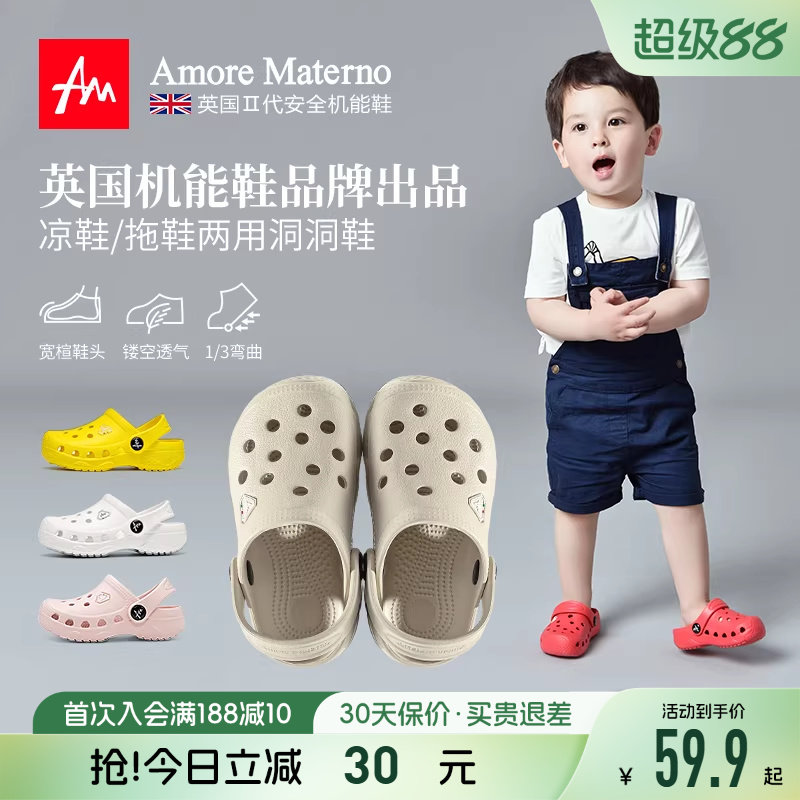 AM儿童拖鞋宝宝洞洞鞋男童夏季女童凉拖鞋亲子防滑沙滩鞋室内外穿