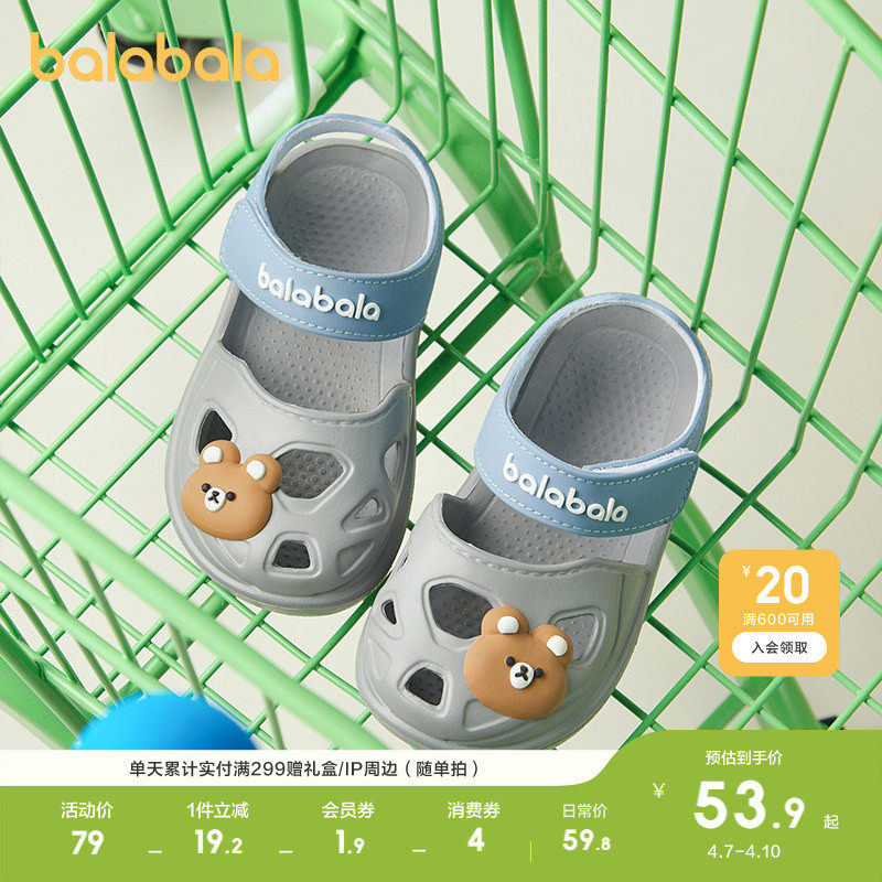 巴拉巴拉儿童拖鞋男童夏季宝宝洞洞鞋防滑室内洗澡女童沙滩凉拖鞋