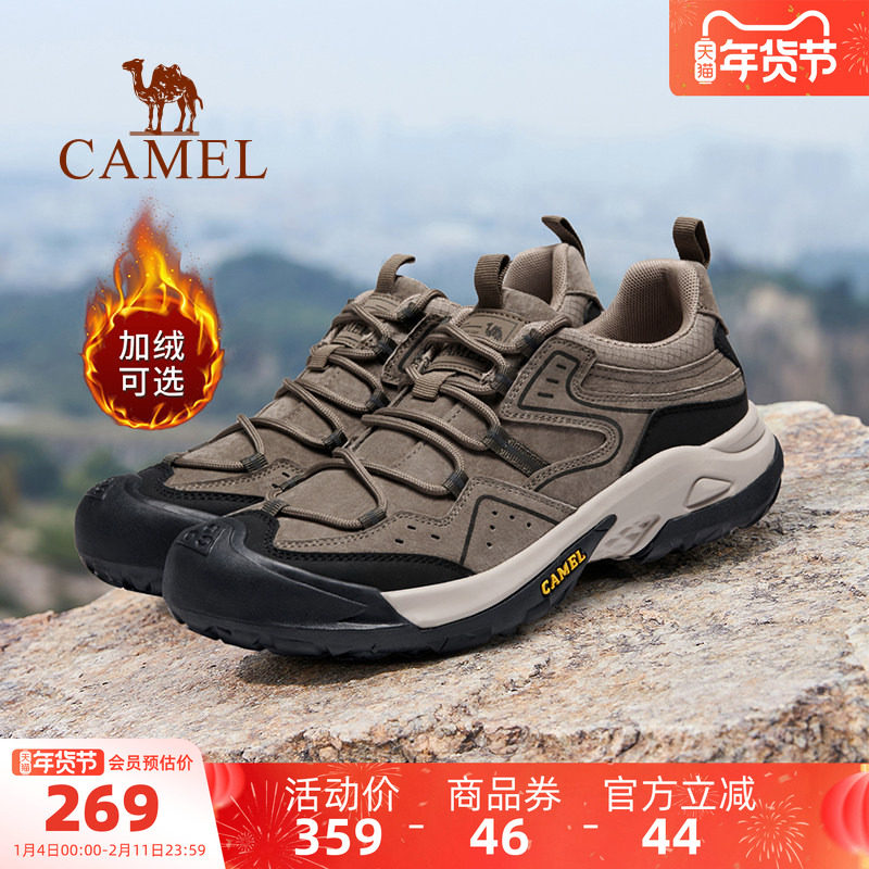 骆驼男鞋2025冬季新款休闲运动鞋男士加绒防滑山系户外登山徒步鞋