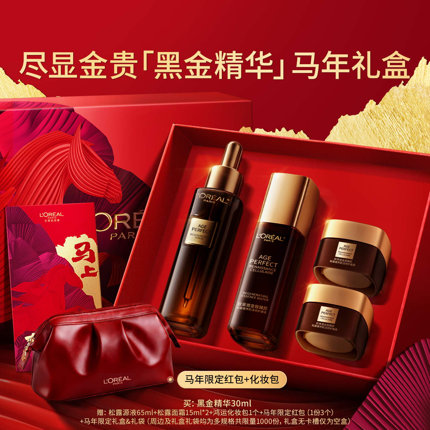 【新年礼物】欧莱雅黑金精华液护肤品礼盒套盒紧致抗皱抗老淡纹