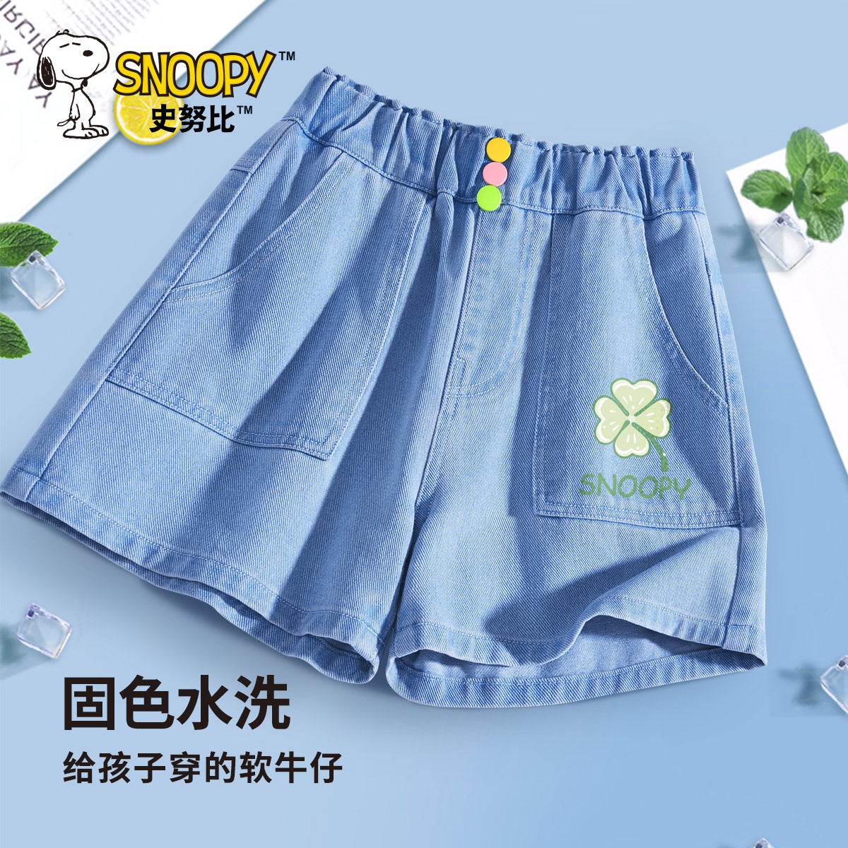 史努比女童短裤夏季薄款韩版洋气多巴胺2024新款牛仔裤儿童裤子女