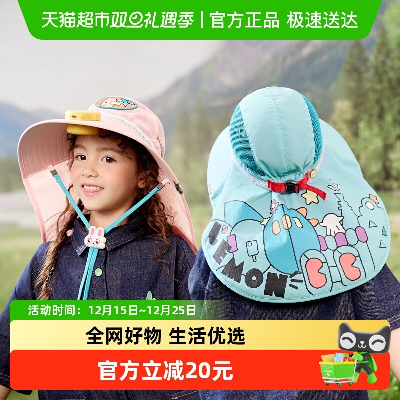 柠檬宝宝儿童防晒帽男女童风扇太阳帽子夏小孩宝宝大帽檐遮阳帽