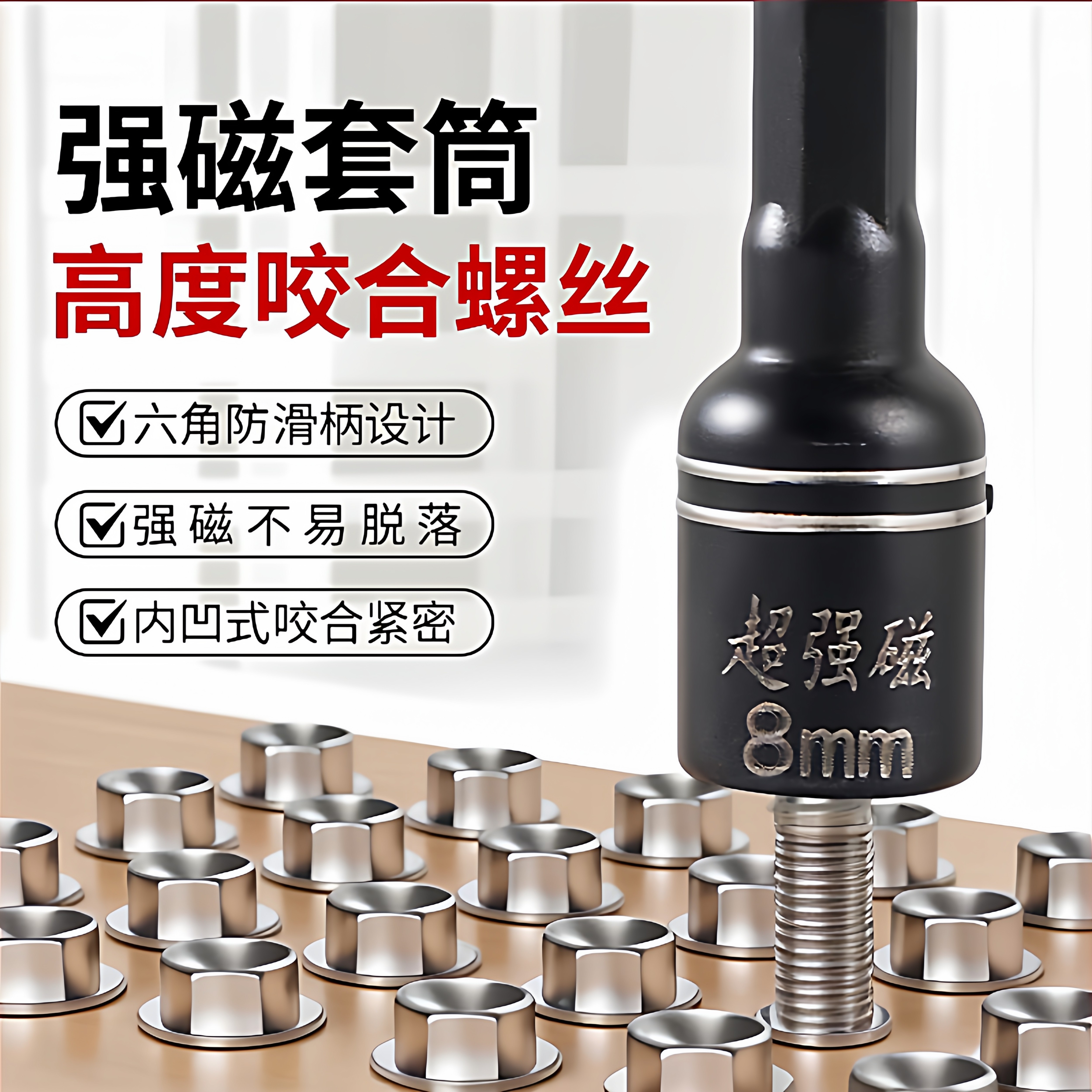 强磁套筒头内六角外自攻螺丝燕尾丝批头电动扳手电钻套头套装8mm