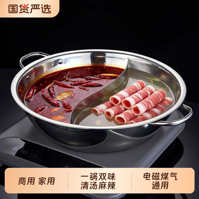 加厚带盖不锈钢火锅锅具汤锅家用火锅盆卡式炉电磁炉专用鸳鸯锅