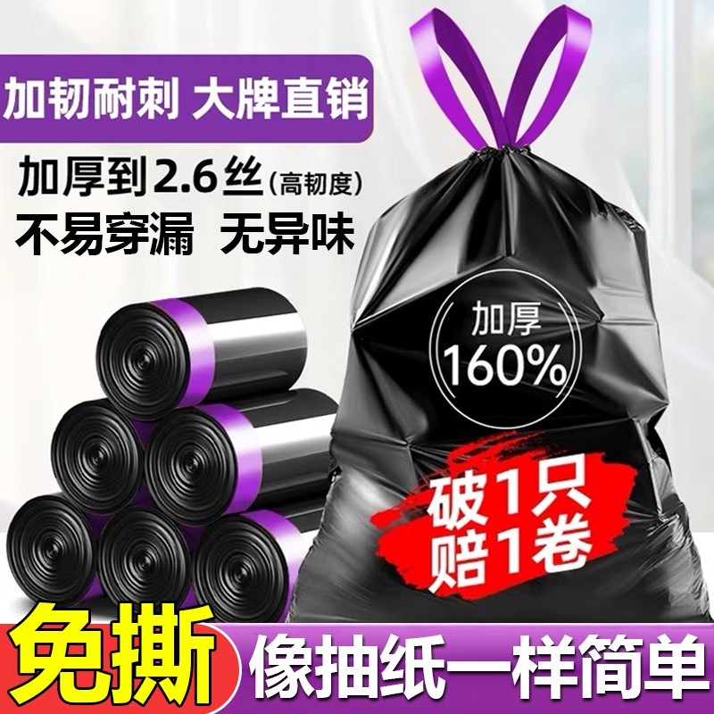 垃圾袋家用加厚手提式抽绳免撕自动厨房黑色塑料袋特厚大号实惠装