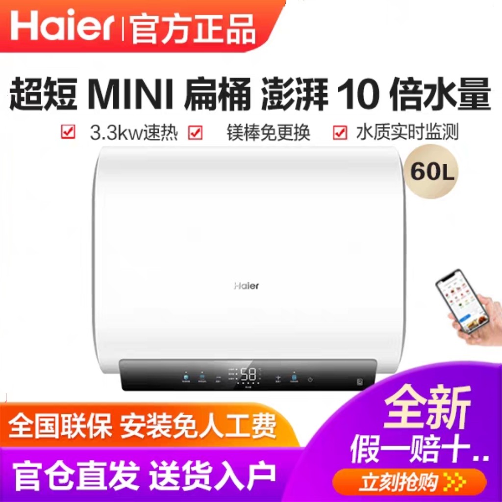 Haier/海尔 EC6003HD-BK3MINIKU1 超短巧双胆家用扁桶电热水器50L
