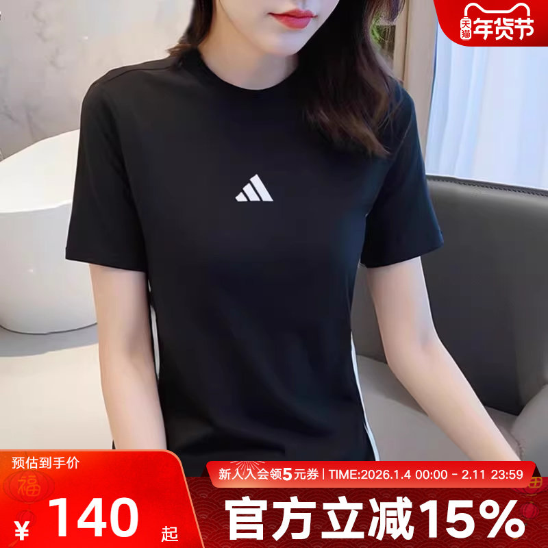休闲宽松纯棉上衣圆领短袖T恤男女夏季新款adidas阿迪达斯轻运动