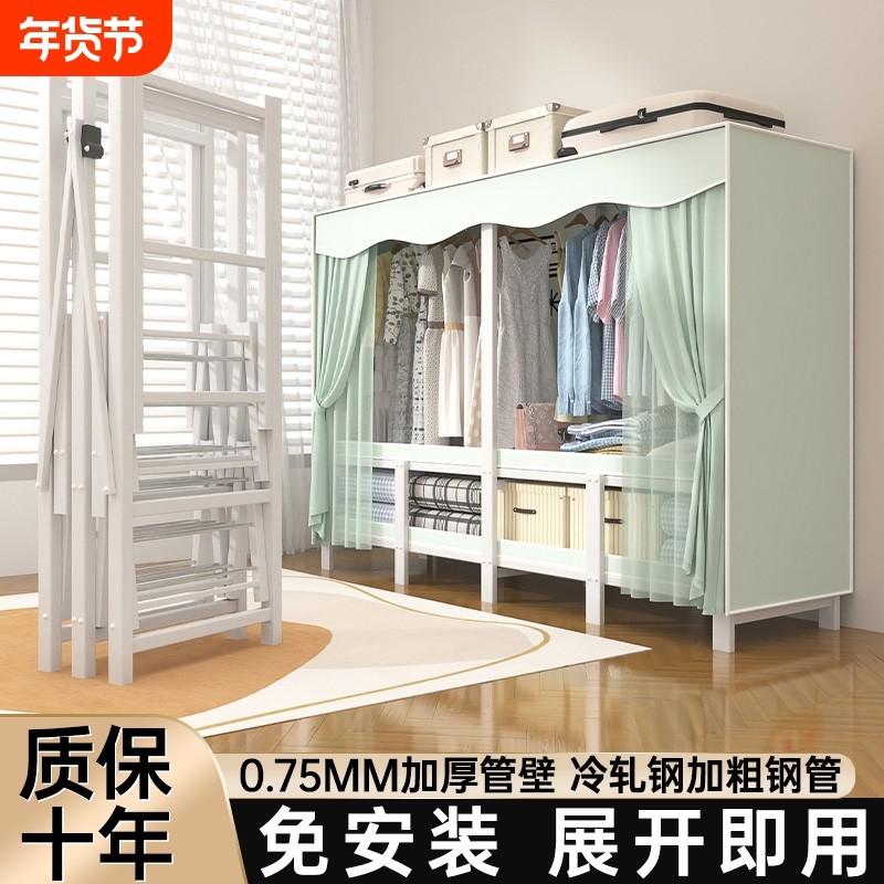 衣柜卧室家用简易布衣柜一体免安装折叠柜子出租房用衣橱结实耐用
