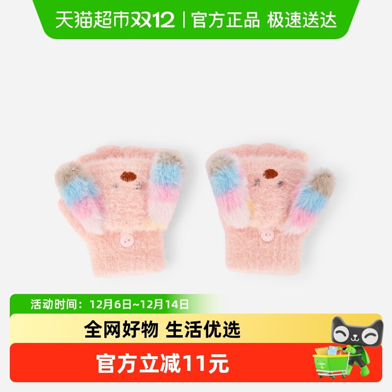 巴拉巴拉balaOne儿童手套男童女童2025新款毛绒小狗造型翻盖可爱