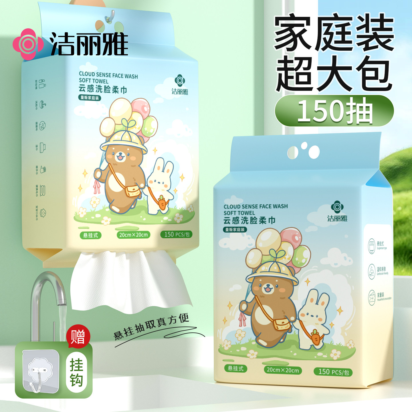 洁丽雅洗脸巾一次性壁挂悬挂抽取式家庭装美容院擦脸面巾厚毛巾女