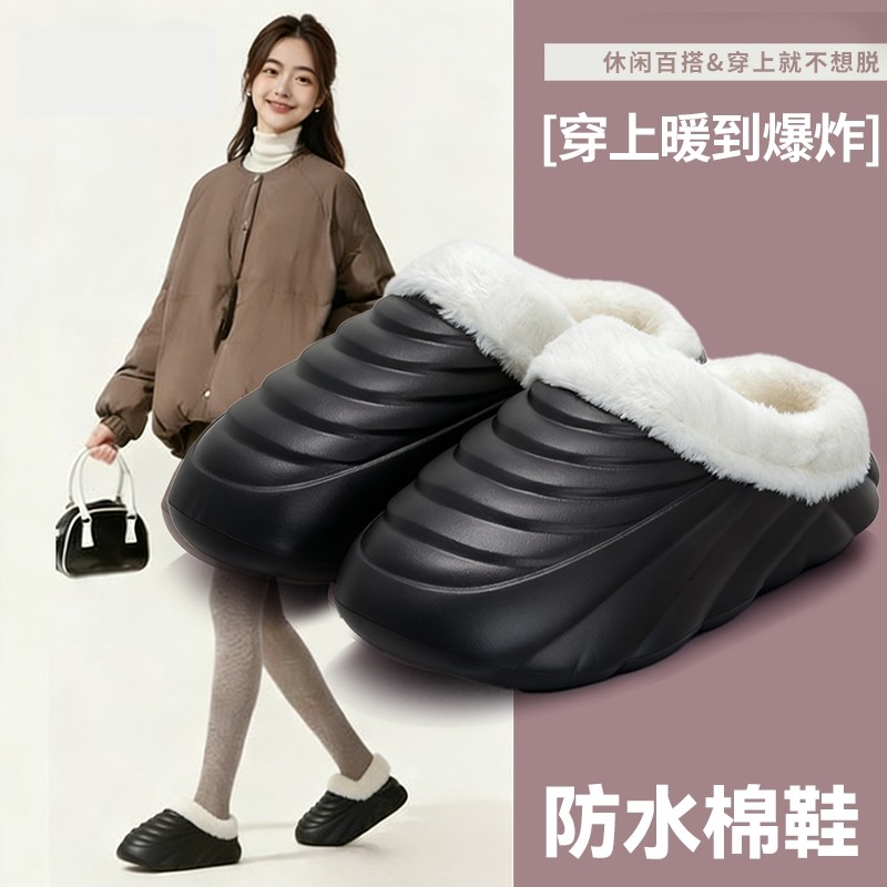 保暖棉拖鞋男士加绒厚底情侣棉鞋防滑防水雪地可外穿居家棉拖女款