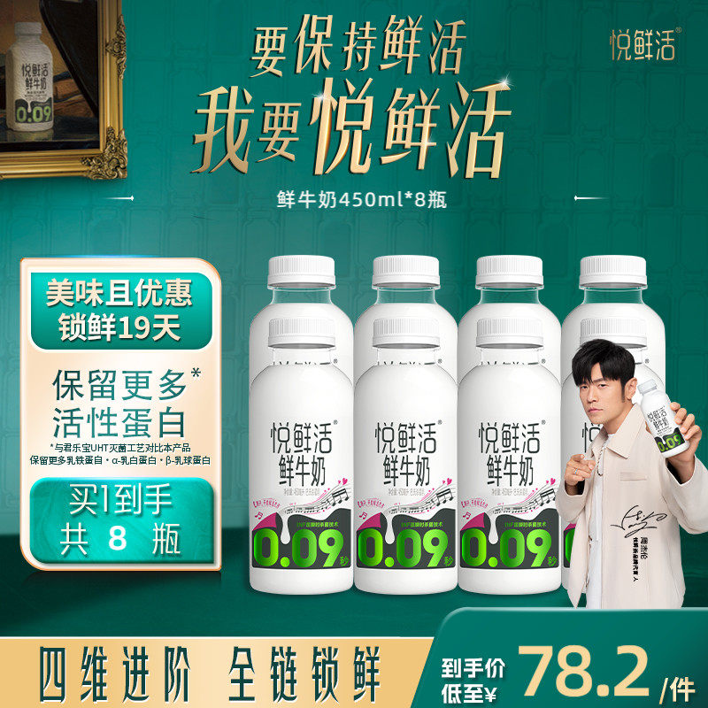 悦鲜活鲜牛奶450ml*8瓶 营养低温鲜奶