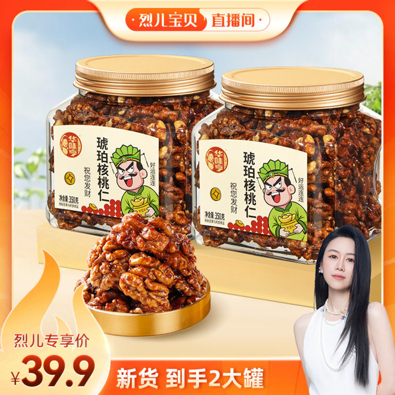 【烈儿宝贝直播间】华味亨 琥珀核桃仁350g/罐 罐装坚果