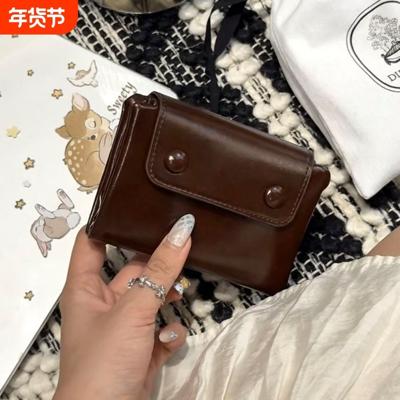 2025新款日系复古软糯软包小眼睛钱包短款拉链暗线零钱包卡包证件