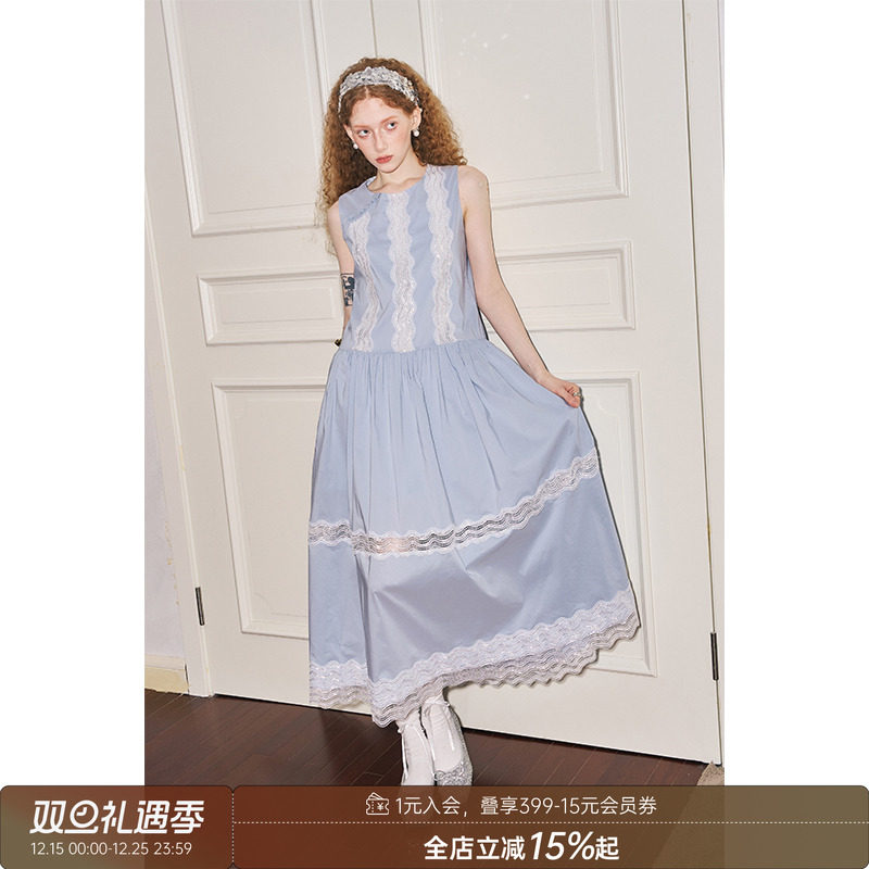 【清仓特惠】DIDDI MODA花边蕾丝拼接圆领长裙