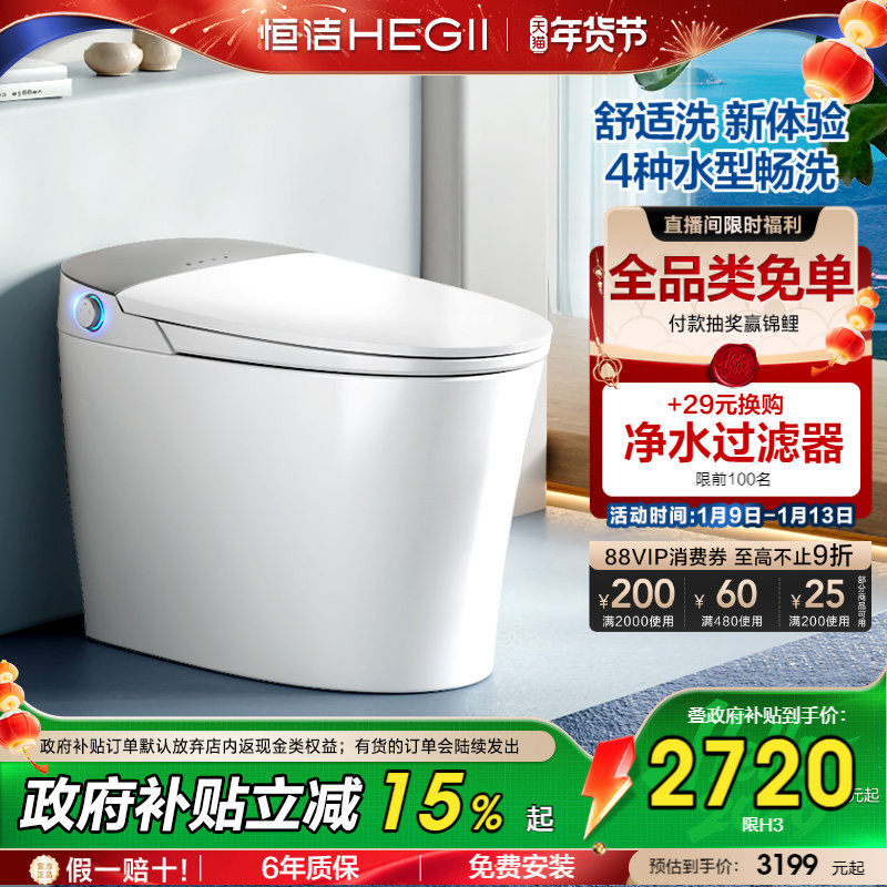 【政府补贴】恒洁智能马桶全自动一体式坐便器家用零压舒适洗H3