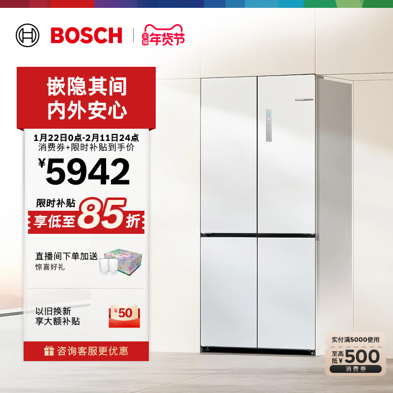 [新品]博世503L小平安S8平嵌零嵌入式冰箱家用十字双开门一级能效