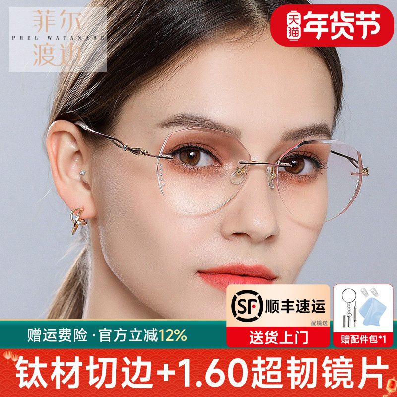 LOHO无框眼镜女近视可配度数防蓝光纯欲超轻高级感无边框眼睛镜架