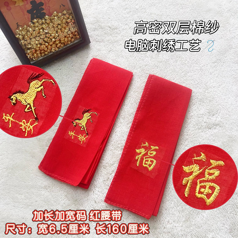 马年红腰带生肖本命年大红色棉布裤腰带年货平节安福字男女通用