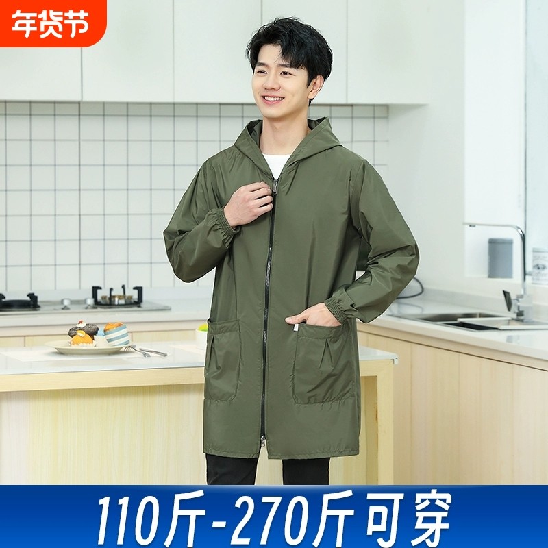 罩衣男工作服长袖防水防油男款大人秋冬护衣纯色大褂家用厨房围裙