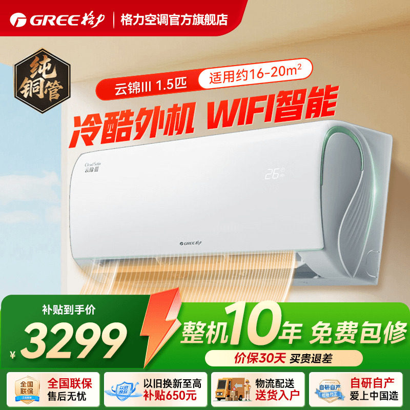 格力空调一级能效冷暖大1匹正1.5匹卧室挂机云锦三代官方旗舰正品