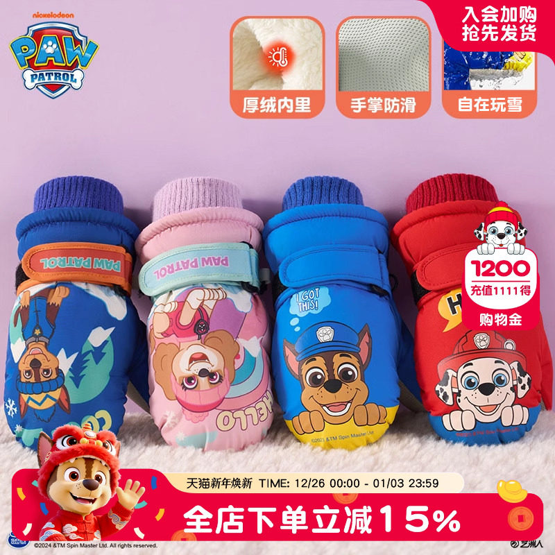 汪汪队儿童保暖手套男童男孩冬天加绒滑雪手套玩雪女童防水骑行