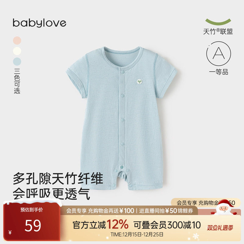 babylove婴儿连体衣夏季薄款短袖哈衣爬服纯色竹棉睡衣宝宝衣服