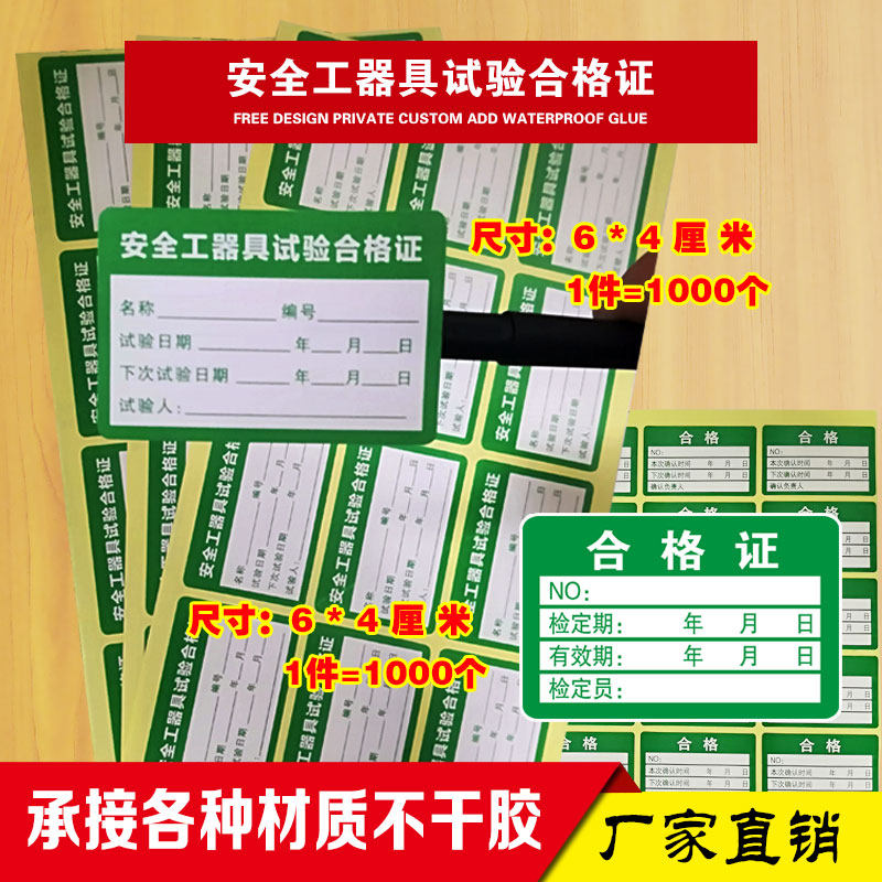 安全工器具试验合格证标签大号产品检定合格证不干胶校准证定制