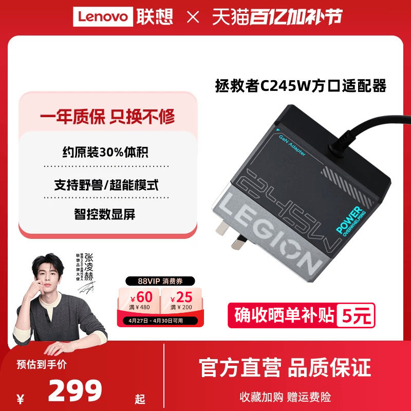 【新国标3C认证】联想拯救者C245W氮化镓Slim方口充电器笔记本华硕