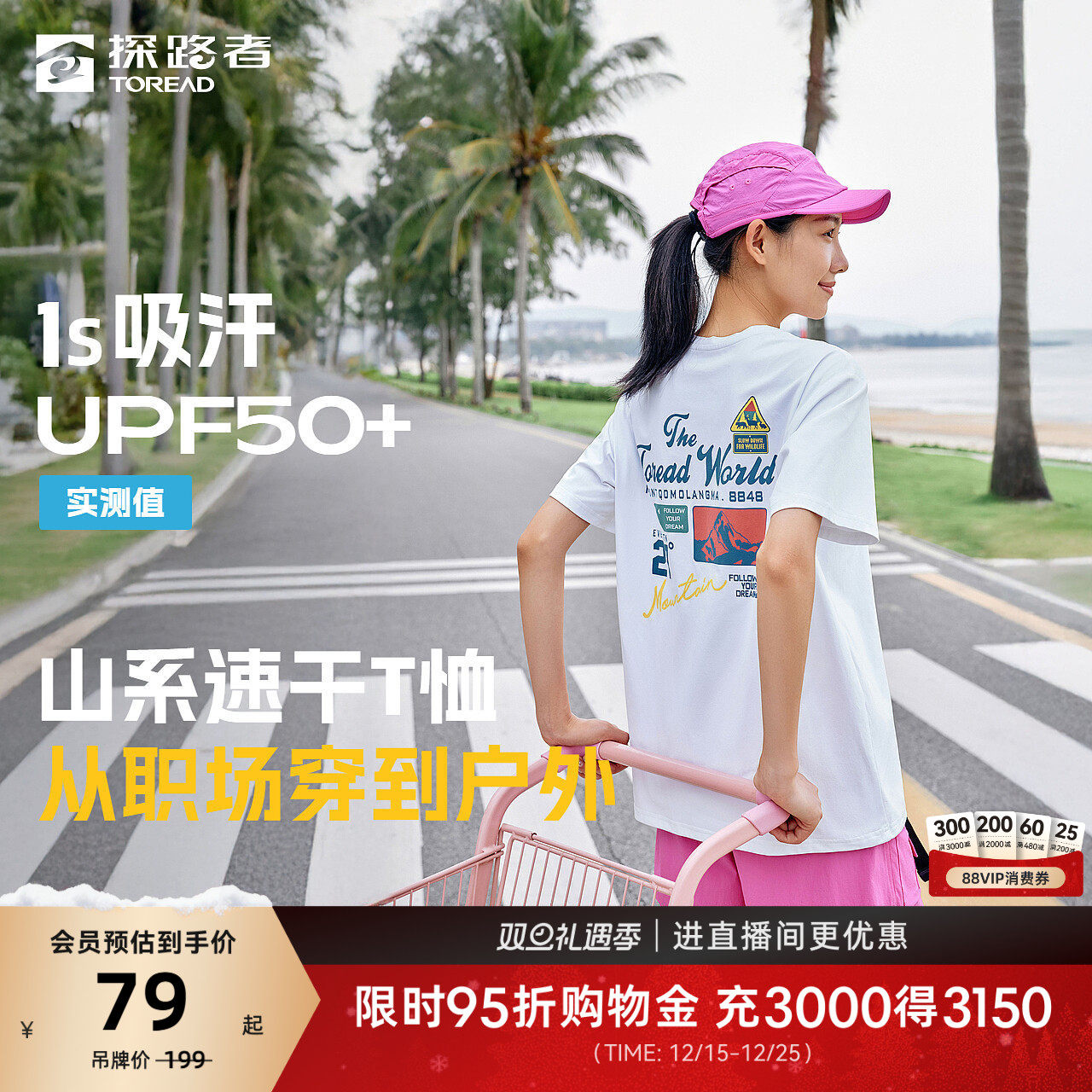 探路者短袖男2025年新款户外徒步防晒吸汗速干高弹面料印花T恤女