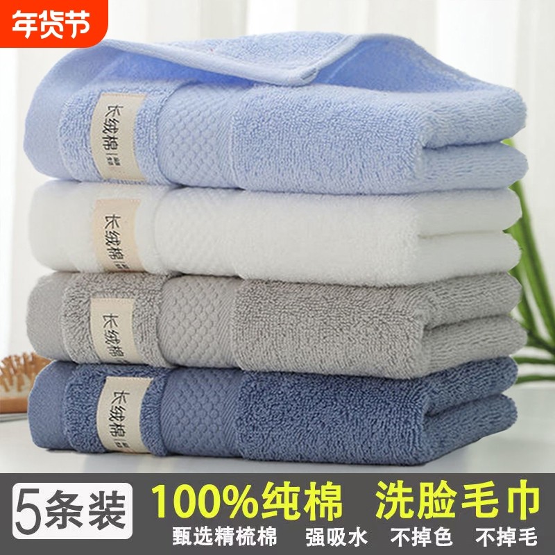 五湖纯棉100%洗脸毛巾家用吸水男全棉毛巾女面巾不易酒店不掉毛