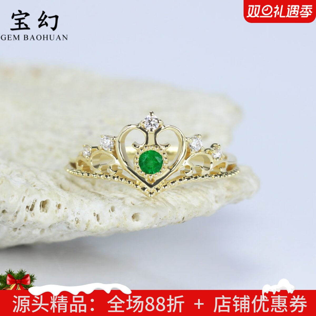 18K玫瑰金天然鸽血红宝石小公主皇冠戒指 祖母绿蓝宝钻石白黄金女