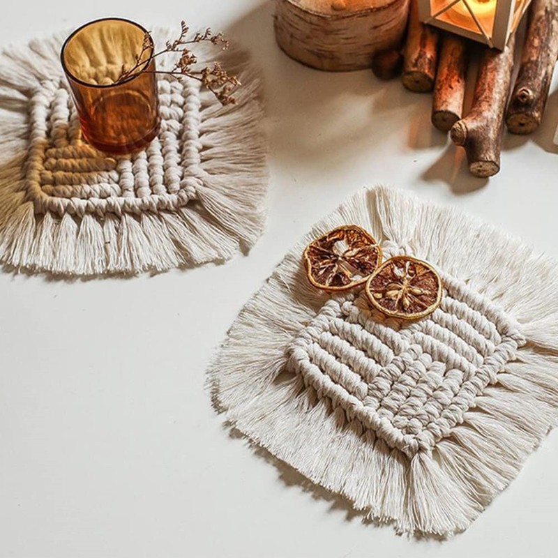 编织棉绳隔热垫子方形流苏餐桌垫隔热茶杯垫咖啡垫装饰