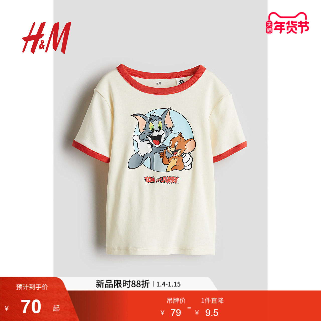 【猫和老鼠】HM童装儿童男童女童T恤春季卡通短袖上衣1264690