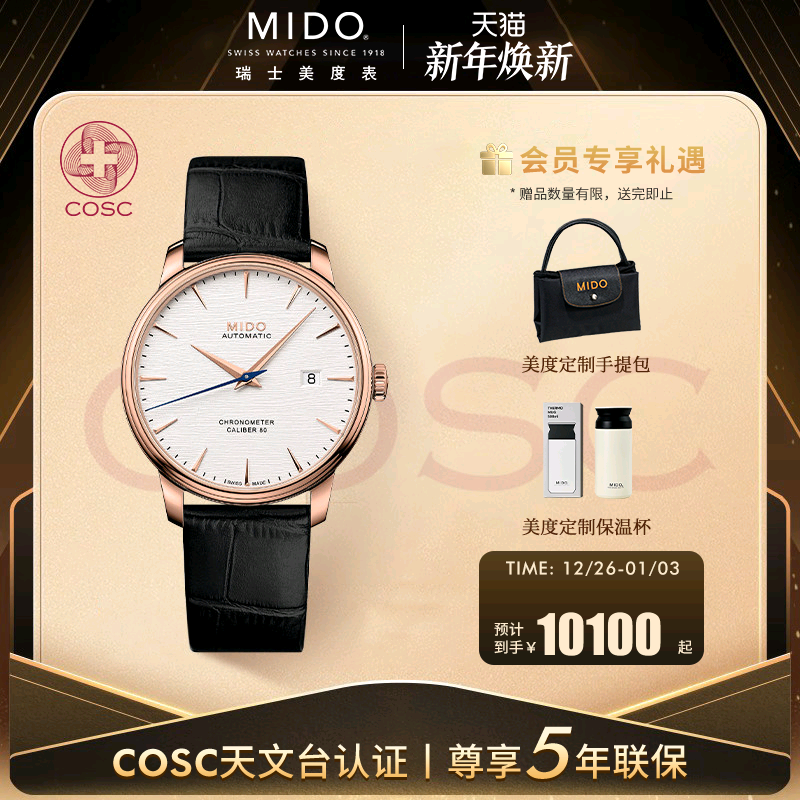 Mido美度手表男贝伦赛丽系列复古休闲男表全自动机械表天文台腕表