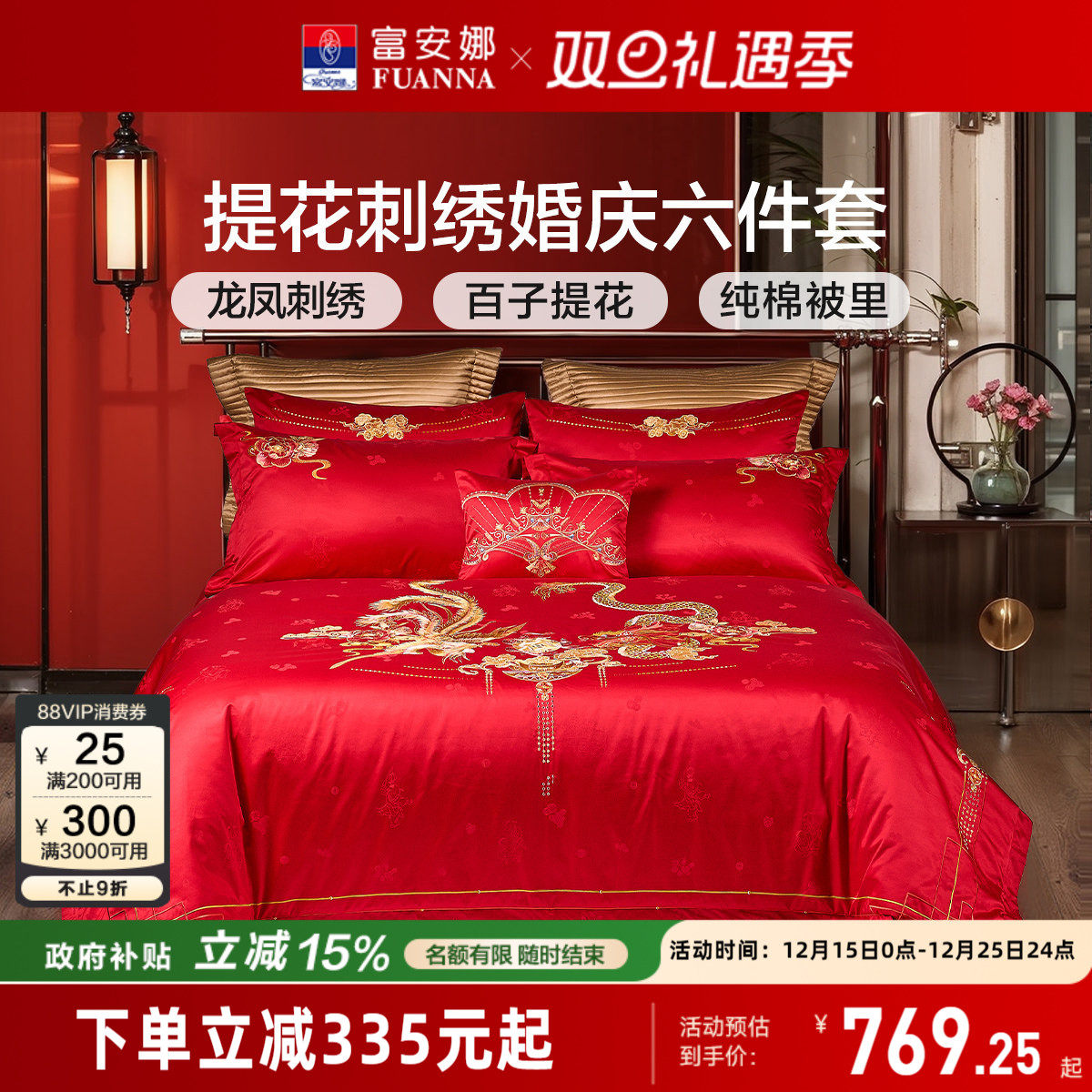 富安娜结婚四件套龙凤婚庆床上用品红色喜庆床单新婚喜被婚嫁被套