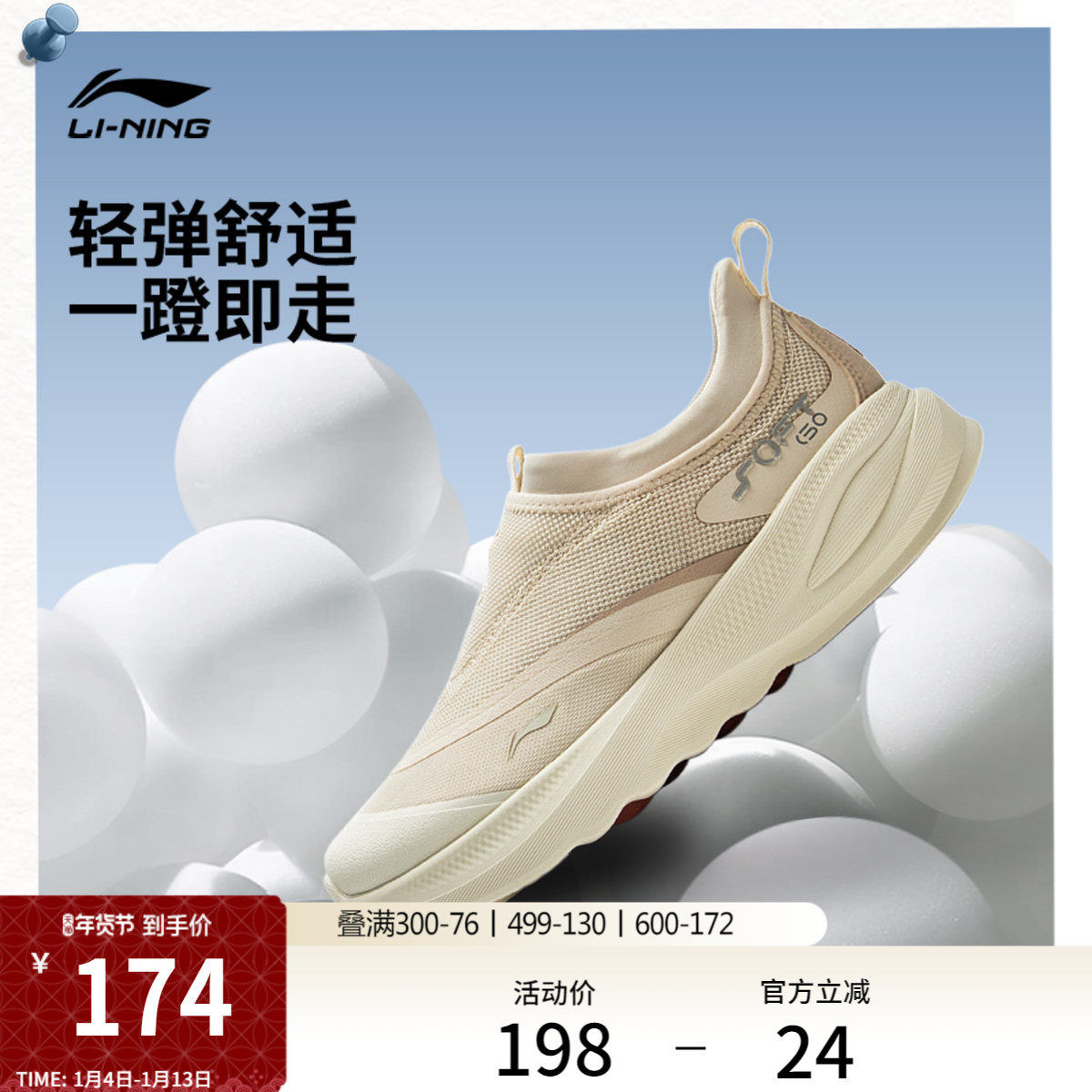 李宁SOFT GO 2丨休闲鞋女鞋新款潮流一脚蹬轻便舒适跑步运动鞋子