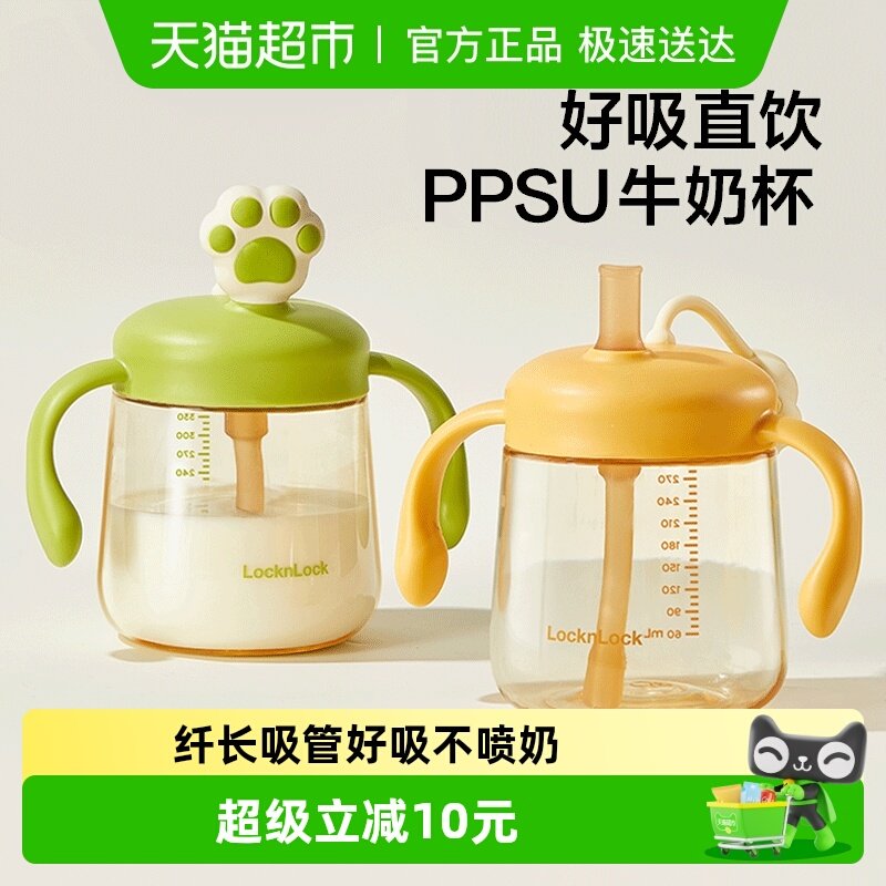 乐扣乐扣儿童水杯PPSU牛奶杯吸管奶瓶1岁以上直饮杯宝宝喝水杯子