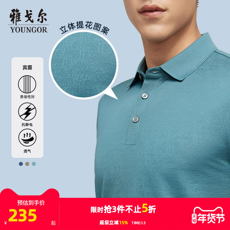 【暗纹宾霸】雅戈尔夏季男士短袖polo衫商务休闲大码宽松翻领T恤