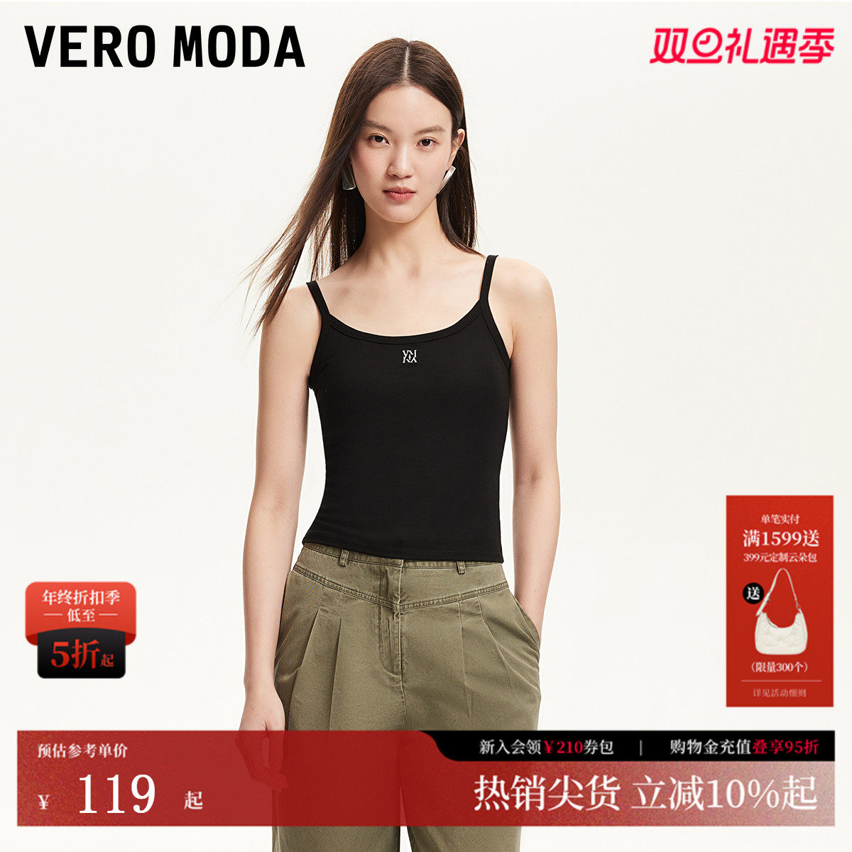 Vero Moda吊带女2025秋冬自带胸垫字母刺绣修身吊带清凉百搭
