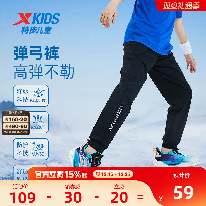 弹弓裤|特步童装男童高弹凉感运动裤夏季儿童速干长裤大童防蚊裤