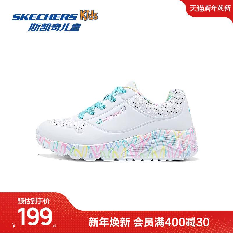 Skechers斯凯奇儿童UNO系列时尚板鞋春夏新款女童涂鸦休闲运动鞋
