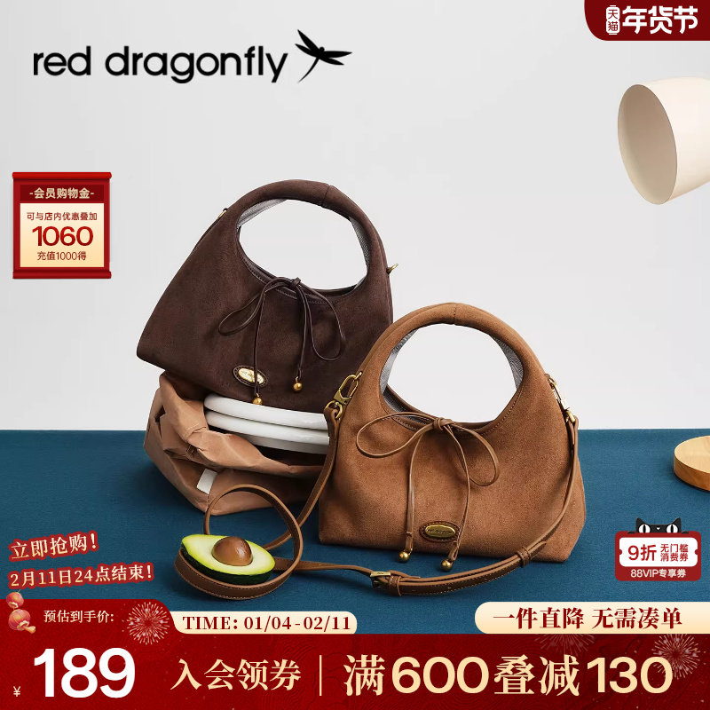红蜻蜓蝴蝶结反绒小拎包新款三角饭团包生日礼物单肩斜挎手提女包