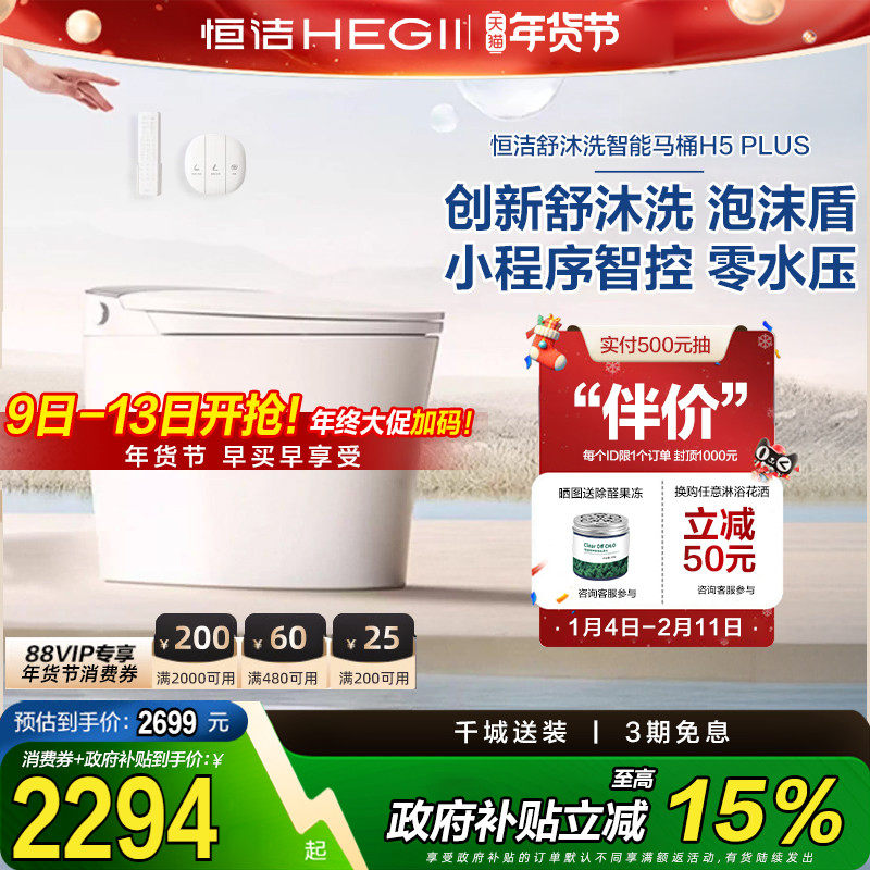 恒洁智能马桶全自动家用即热无水压脚感冲水翻盖一体坐便器H5plus