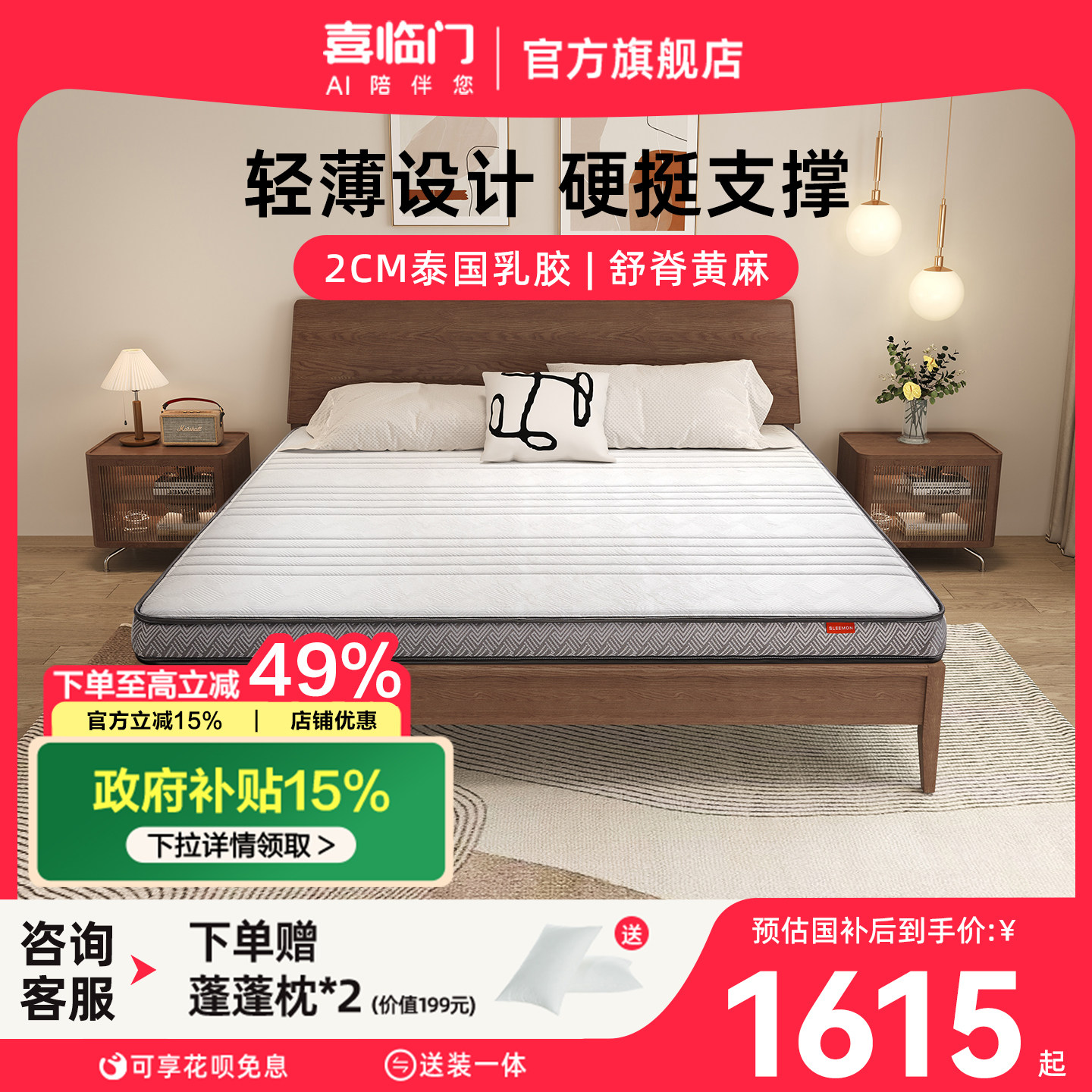 【AIR】喜临门官方舒脊家用乳胶黄麻硬垫薄垫单人(床垫)