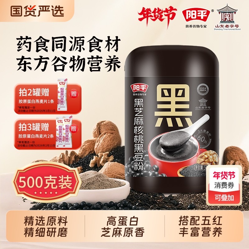 阳平黑芝麻核桃黑豆粉学生营养早餐代餐粉即食冲泡罐装饱腹五黑粉