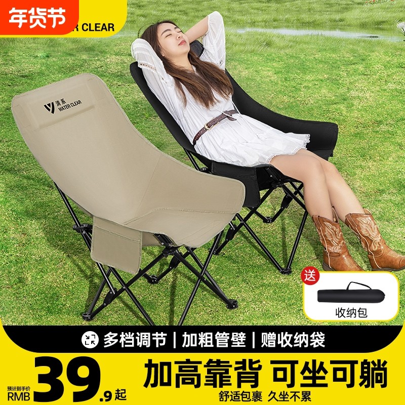 月亮椅露营椅子高靠背户外折叠椅便携式躺椅钓鱼凳沙滩椅野餐桌椅