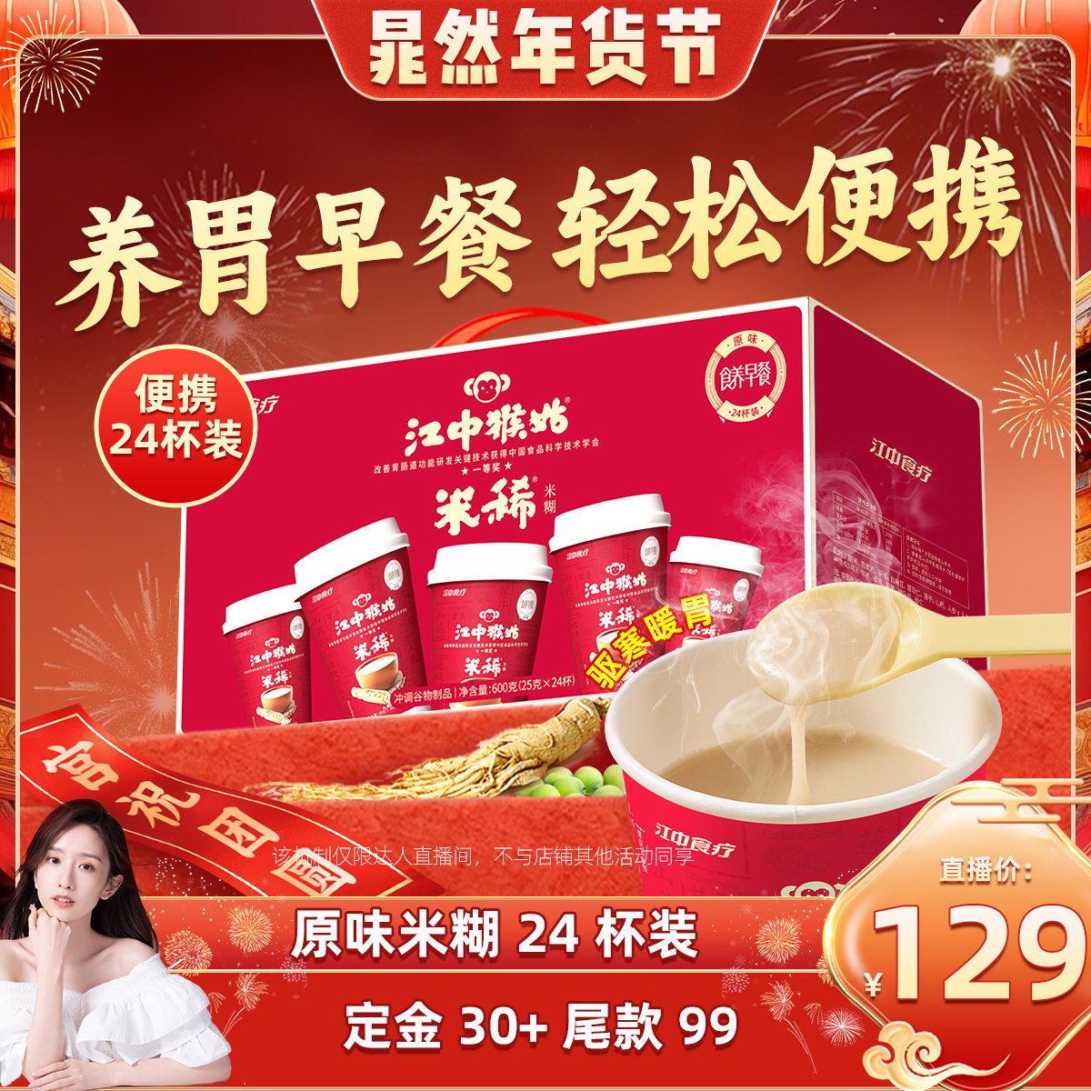 【晁然推荐】江中猴姑米稀原味米糊24杯装养胃食品营养年货送礼