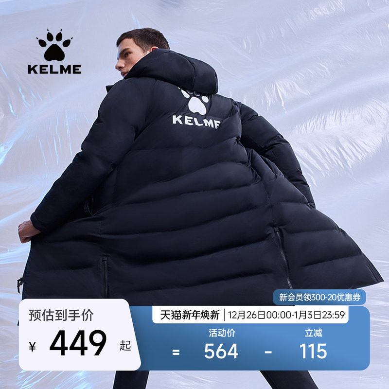 KELME卡尔美官方旗舰运动棉衣 长款棉袄冬足球训练大衣棉服外套男