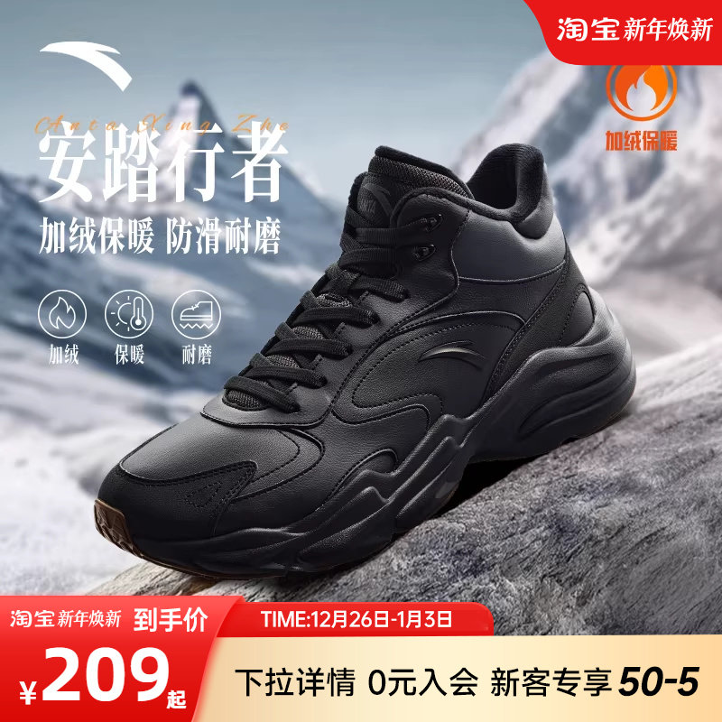 安踏行者丨加绒男鞋棉鞋冬季加厚运动鞋保暖大棉鞋官方高帮休闲鞋